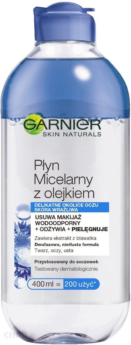 GARNIER PŁYN MICELARNY PIELĘGNUJĄCY SKÓRA WRAŻLIWA 400ML jest niezwykle skuteczny w usuwaniu makijażu.Czy płyn micelarny pielęgnujący jest dla mnie?Tak, jeśli szukasz niezwykle skutecznego i uniwersalnego produktu, który w jednym geście oczyszcza wrażliwą skórę twarzy i oczu oraz usuwa każdy rodzaj makijażu (nawet wodoodporny i długotrwały).Czym się wyróżnia?Płyn micelarny pielęgnujący to dwufazowy produkt nowej generacji, specjalnie opracowany do skóry wrażliwej i oczu, polecany również osobom noszącym szkła kontaktowe. Skutecznie usuwa każdy rodzaj makijażu (nawet wodoodporny i długotrwały), oczyszcza i przywraca uczucie komfortu w jednym geście, bez potrzeby pocierania. Jego formuła zawiera micele, które niczym magnes wiążą znajdujące się na skórze zanieczyszczenia, aby skutecznie oczyścić skórę z makijażu twarzy, ust i oczu. Formuła wzbogacona w ekstrakt z bławatka odżywia delikatną skórę i przywraca jej poczucie komfortu. Nie wymaga spłukiwania. nie pozostawia tłustego efektu końcowego.