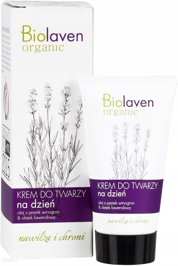 Krem do twarzy na dzień – Nawilża i Chroni – marki BIOLAVENNawilżająco-ochronny krem do twarzy na dzień, przeznaczony do codziennej pielęgnacji cery wymagającej. Zawiera odżywczy olej z pestek winogron i witaminę E, które chronią przed wysuszeniem i działaniem szkodliwych czynników, przywracając skórze miękkość i elastyczność. Krem może być stosowany pod makijaż oraz na okolice przemęczonych oczu, doskonale się rozprowadza i wchłania. Naturalny olejek eteryczny z lawendy, symbol Prowansji, koi i odświeża skórę, pozostawiając ją gładką, nawilżoną i zrelaksowaną.BIOLAVEN to marka polskich kosmetyków naturalnych, produkowana przez firmę SYLVECO. Bazuje na dwóch składnikach roślinnych, charakterystycznych dla rejonu francuskiej Prowansji: olejku eterycznym z lawendy i oleju z pestek winogron.Kluczowe składniki: Olejek lawendowy – głównym surowcem są kwiaty i części łodygi, a jego charakterystyczny słodki aromat o nucie ziołowo-kwiatowej jest bardzo łatwo rozpoznawalny. Szczególne znaczenie znalazł w aromaterapii, gdyż powoduje fizyczną relaksację ciała, odprężenie i uczucie komfortu. Olejek lawendowy posiada ponadto właściwości antyseptyczne, przeciwbólowe, stosowany jest przy oparzeniach i zranieniach. Przyspiesza gojenie się ran i zapobiega powstawaniu blizn. W kosmetykach sprawdza się w pielęgnacji cery trądzikowej, zmniejsza łojotok, stymuluje wzrost nowych komórek, łagodzi objawy egzemy. Jest jednym z nielicznych olejków eterycznych, które można stosować bezpośrednio na skórę, bez konieczności rozcieńczania.Olej z pestek winogron – otrzymywany jest z nasion winorośli właściwej. Posiada bardzo wysoki poziom nienasyconych kwasów tłuszczowych (powyżej 90%), jest bogatym źródłem witaminy E, zwanej witaminą młodości. Olej ten jest całkowicie przyjmowany i wchłaniany przez skórę, nie pozostawia nieprzyjemnie tłustej powierzchni. Wykazuje działanie przeciwrodnikowe, hamuje procesy starzenia skóry, ma właściwości kojące i łagodzące, przyspiesza regenerację naskórka i rozświetla cerę. W uwagi na to, że jego skład przypomina strukturę lipidową skóry, wzmacnia jej naturalną barierę ochronną.Ksylitol – posiada silne właściwości nawilżające, dzięki czemu utrzymuje odpowiedni poziom stężenia kwasu hialuronowego w skórze. Ponadto wzmacnia naturalną barierę ochronnąi pobudza syntezę jej składników (m.in. ceramidów)Mocznik – wchodzi w skład naturalnego czynnika nawilżającego skóry, przyciąga i zatrzymuje wodę w górnych warstwach naskórka. Likwiduje szorstkość skóry, ma działanie zmiękczającei uelastyczniające. Ułatwia również wnikanie substancji aktywnych w głąb skóry.Witamina E – witamina młodości, posiada wysoką zdolność neutralizowania wolnych rodników, chroni przed zniszczeniem lipidy naskórka, włókna kolagenowe i elastynowe, dzięki czemu znacznie spowalnia procesy starzenia się skóry.BEZ: POCHODNYCH ROPY NAFTOWEJ – PEG – GLIKOLI – SILIKONÓW – PARABENÓW – BARWNIKÓW – SLS Sposób użycia: Codziennie rano nakładać na oczyszczoną skórę twarzy i szyi.Termin ważności: 12 miesięcy od daty produkcji, 6 miesięcy od momentu otwarcia.Pojemność: 50 mlINCI: Aqua, Glycine Soja Oil, Vitis Vinifera Seed Oil, Sodium Stearate, Sucrose Cocoate, Glycerin, Urea, Xylitol, Glyceryl Stearate, Stearic Acid, Cetearyl Alcohol, Tocopheryl Acetate, Xanthan Gum, Benzyl Alcohol, Lavandula Angustifolia Oil, Parfum, Dehydroacetic Acid.