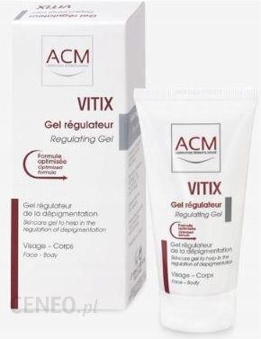 Kompleksowa odpowiedź na problemy skóry dotkniętej bielactwem VITIX ® żel – terapia normalizująca. Pomaga w repigmentacji warstwy podstawnej naskórka. Jego efektywność została potwierdzona w wielu badaniach klinicznych. SKŁAD: Aqua (Water), Propylene Glycol, Hydroxypropyltrimonium Maltrodextrin Crosspolymer, Cucumis Melo (Melon) Fruit Extract, Carbomer, Acrylates/C10-30 Alkyl Acrylate Crosspolymer, Sodium Hydroxide, Diazolidinyl Urea, Methylparaben, Propylparaben. POSTAĆ: Żel z mikrogranulkami, tuba 50 ml WŁAŚCIWOŚCI: VITIX ® żel wykazuje innowacyjny mechanizm działania w leczeniu bielactwa (vitiligo), dzięki zdolności do przywrócenia fizjologicznej równowagi wolnych rodników w komórkach warstwy podstawnej naskórka (zwłaszcza w melanocytach i keratynocytach). VITIX ® żel zawiera opatentowany wyciąg roślinny, bogaty w antyoksydanty. Jest matowym, przezroczystym żelem zawierającym mikrogranulki.Zawarte w formule mikrogranulki chronią aktywny składnik roślinny – wyciąg z melona, który jest uwalniany w kontakcie ze skórą, w trakcie aplikacji żelu. SPOSÓB UŻYCIA: VITIX ® żel należy raz lub dwa razy dziennie delikatnie wmasować w miejsca pozbawione pigmentu oraz w miejsca wokół nich. Po całkowitym wchłonięciu żelu można nałożyć stosowany zazwyczaj krem i wykonać makijaż. VITIX ® żel może być stosowany w połączeniu z fototerapią.